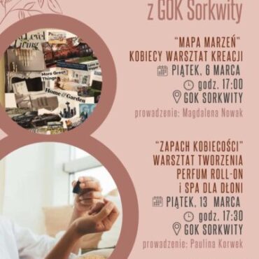 Dzień Kobiet już wkrótce w Sorkwitach. GOK zaprasza na warsztaty Dzień Kobiet w Gminie Sorkwity w tym roku będzie obchodzony w formie dwóch warsztatów organizowanych przez Gminny Ośrodek Kultury. To propozycja skierowana do mieszkanek gminy, łącząca twórczość z relaksem i spokojnym spotkaniem w lokalnym gronie. Liczba miejsc jest ograniczona, dlatego obowiązują wcześniejsze zapisy. „Mapa Marzeń” – 6 marca w GOK Sorkwity Pierwszy warsztat zaplanowano na 6 marca o godz. 17:00 […]